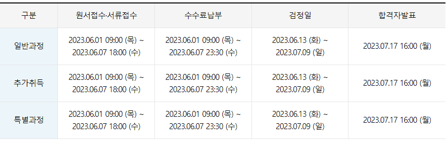 필기시험 → 실기 · 구술 시험 → 연수 → 최종 합격자 발표로 진행됩니다.