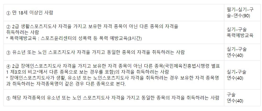 생활스포츠지도자 2급 합격 기준 및 이수기준
