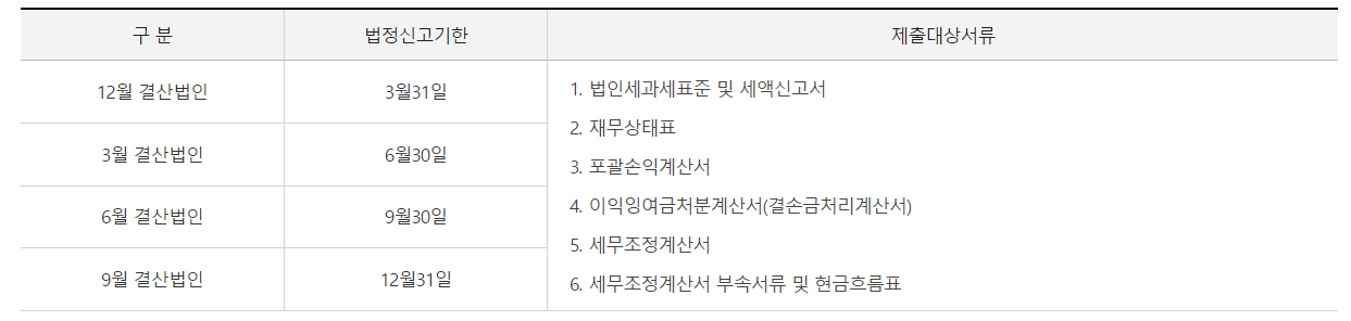 12월 결산법인의 경우 2022년 귀속 법인세 법정신고기한은 2023년 3월 31일이며, 3월 결산법인의 경우 도래하는 6월 30일이 법정신고 기한이 되겠습니다.