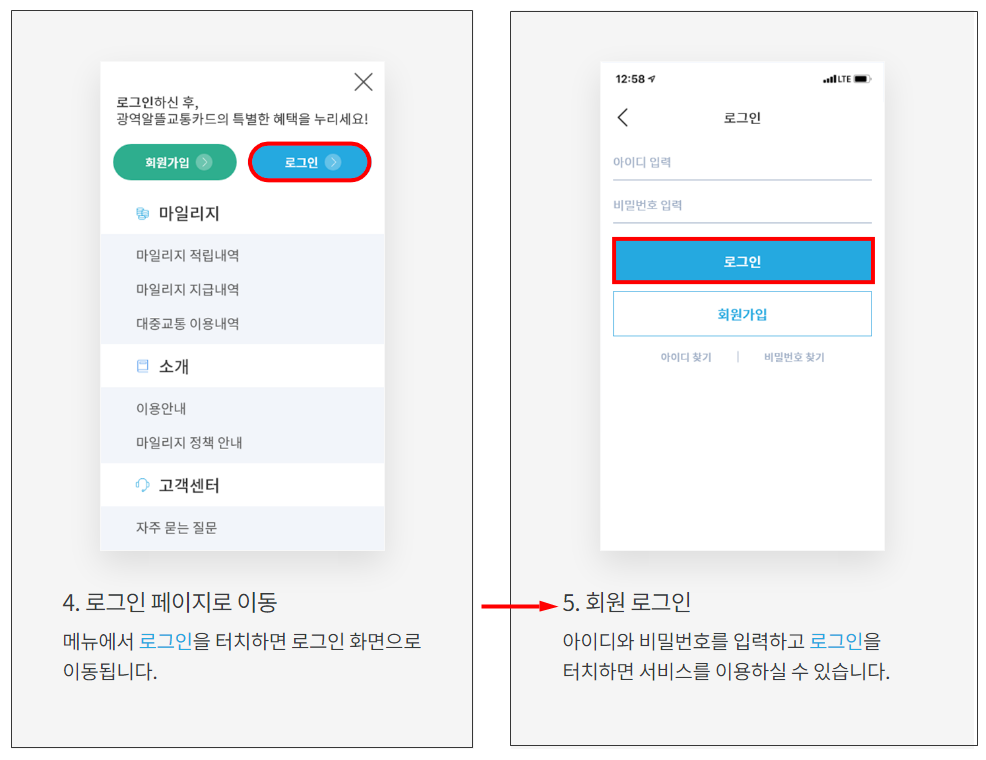 해당 순서에 맞춰 진행하면 알뜰교통카드 앱을 사용할 수 있습니다.
